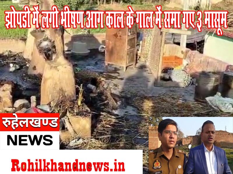 बरेली । फरीदपुर थाना क्षेत्र के नवादा बिलसंडी गांव में शुक्रवार को दर्दनाक हादसा हो गया। गांव नवादा बिलसंडी में शुक्रवार दोपहर को एक झोपड़ी में आग लगने से तीन मासूम बच्चों की जिंदा जलकर मौत हो गई। एक अन्य बच्ची भी झुलसी है। जिसकी हालत गंभीर बताई जा रही है। उसे अस्पताल में भर्ती कराया गया है। घटना की सूचना मिलने के बाद पुलिस ने मौके पर पहुंचकर जांच पड़ताल शुरू कर दी है।